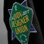 Patches embroidered at side arms.